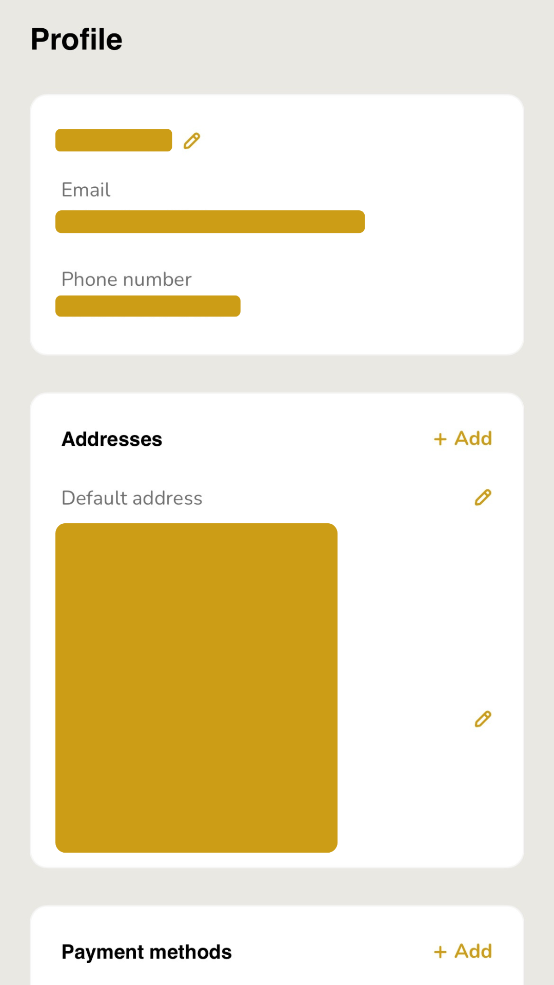 In Profiles, you will be able to edit your email and mailing addresses and payment methods.